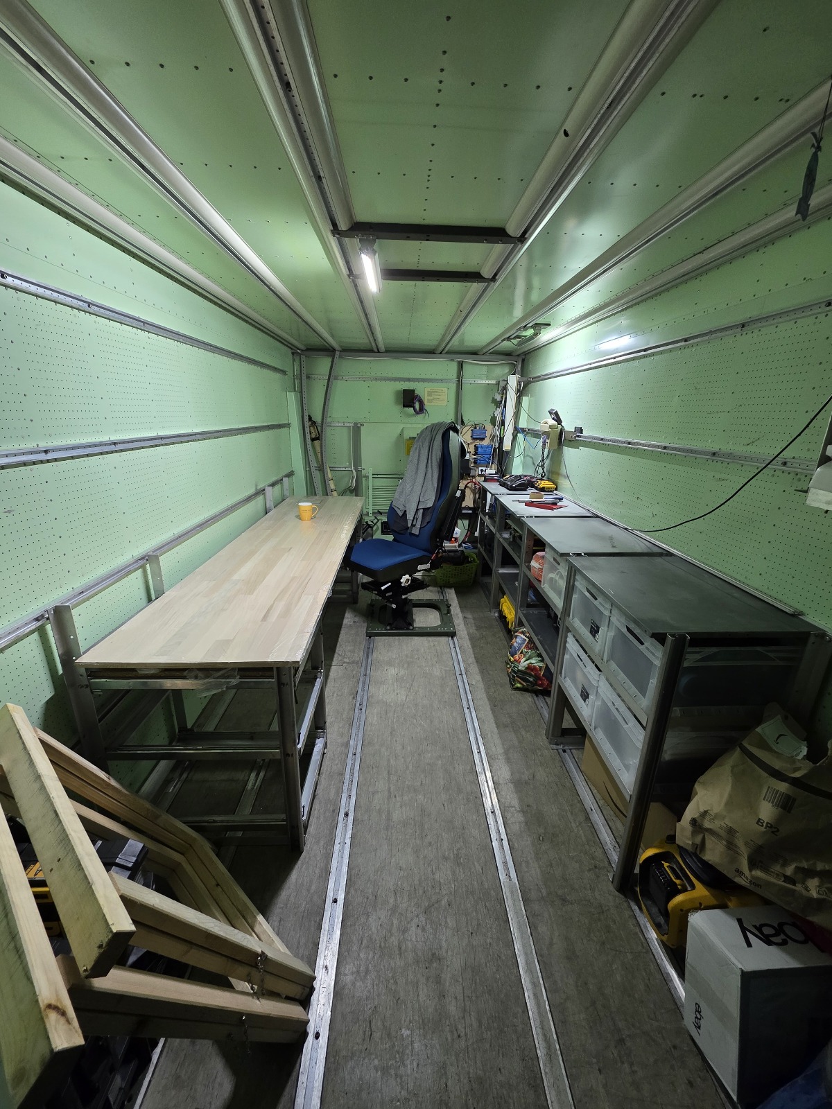 Jedes von ihnen schluckt vier 20-Liter-Euroboxen und hat eine ausziehbare Ablage eingebaut.